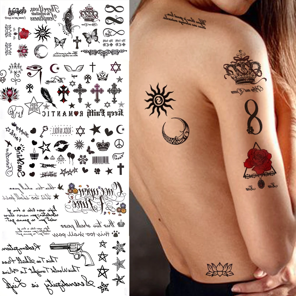 Small Sun Moon Infinity Temporary Tattoos For Women Kids Fake Face Tattoo Adult Sticker Black Crown Tiny Hands Tatoos Cute Star